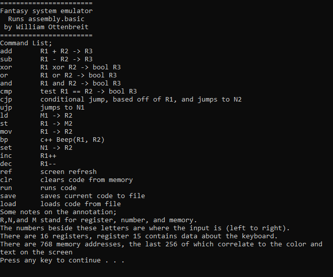 A Fantasty system emulator I coded. You can code in it and run code in a language I made up.
